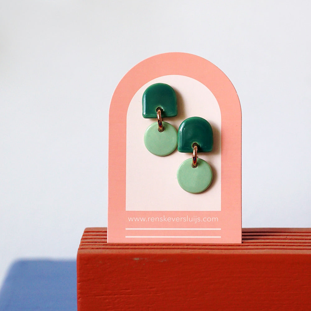 Our porcelain earrings 'Marieke' with their playful shapes, have a ton sur ton colour palette. They come in two colour variations. The studs of the earrings are made of 100% sterling silver. They are handmade with love in our studio in The Netherlands and come with a colourful card.